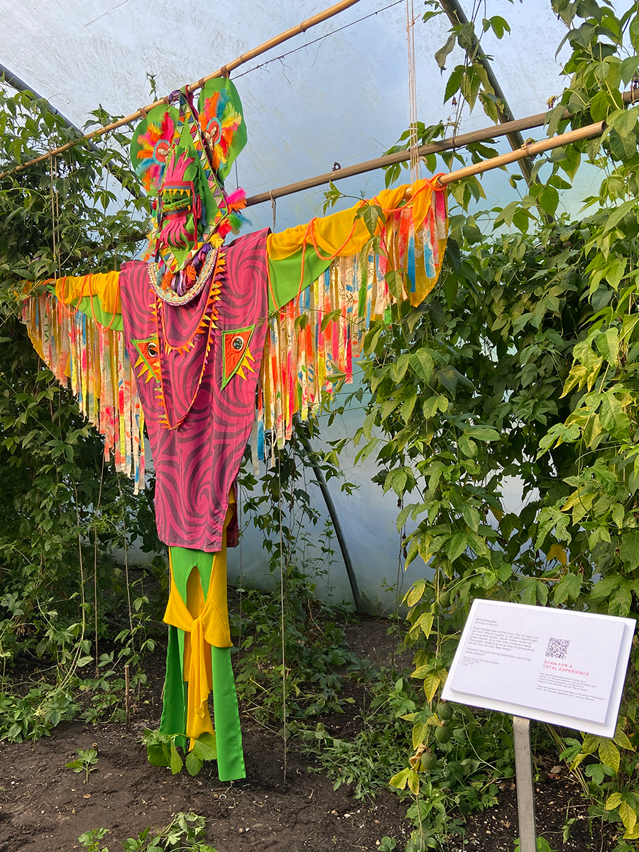 Tussen het weelderige groen van de Hortus Alkmaar prijkt de ‘Paradijsvogel’ – een betoverende totem-achtige godin die je ogen direct vangt. Met haar levendige kleuren en het gebruik van hergebruikte materialen, vertelt deze godin een verhaal van transformatie en herontdekking.